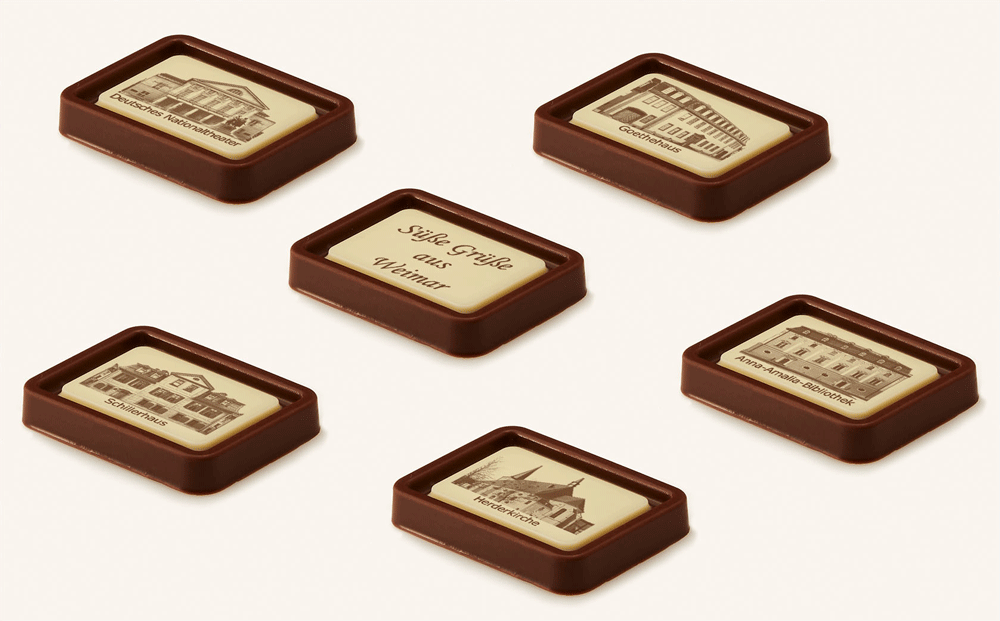 Entdecke die exklusive CandyCard Weimar Edition, ein hochwertiges Schokoladengeschenk mit 12 liebevoll gestalteten CandyminiCards. Jede Mini-Schokotafel zeigt eines von 6 einzigartiges Motiv aus der Kulturstadt Weimar – perfekt als stilvolles Souvenir, besondere Geschenkidee oder hochwertiges Präsent für Genießer.