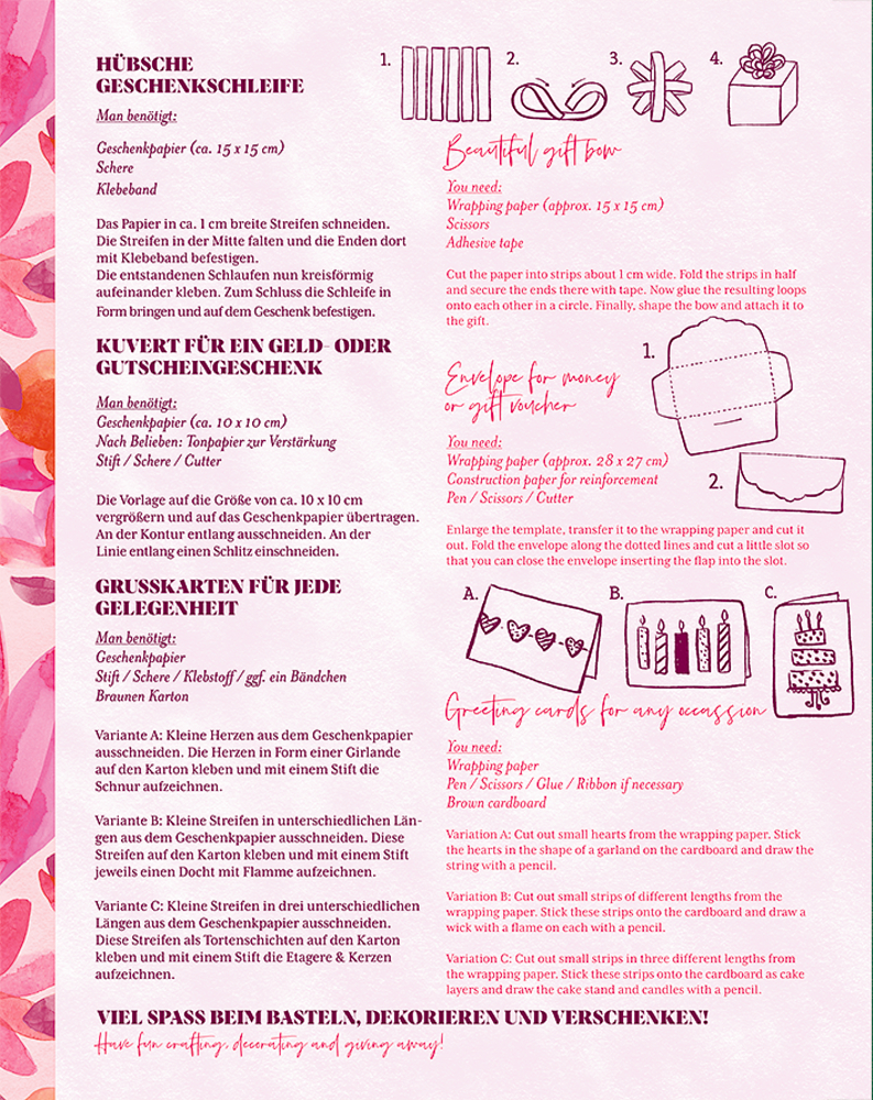 - 2 Seiten mit Verpackungs-Ideen und 9 Geschenkanhänger